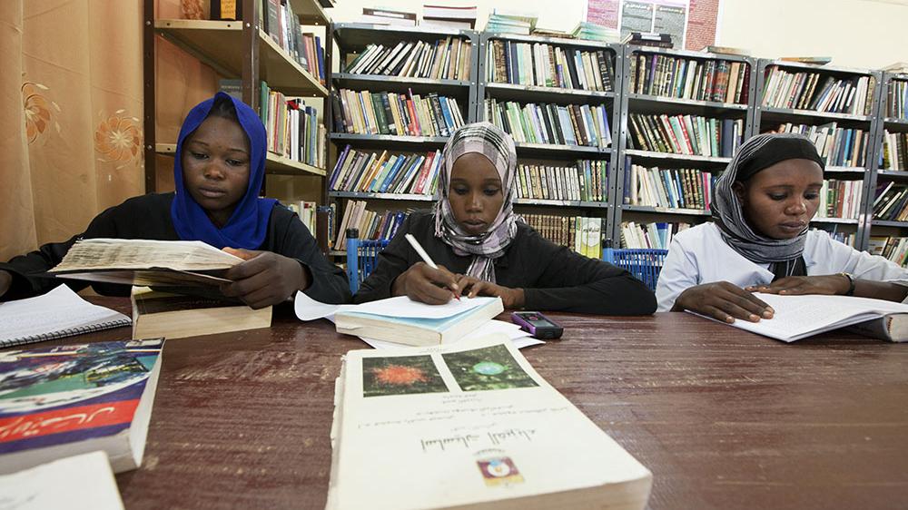 في 12 نوفمبر 2012، في الجنينة، غرب دارفور، طالبات يدرسن في مكتبة جامعة الجنينة. تصورير: ألبرت غونزاليس فران، اليوناميد.
