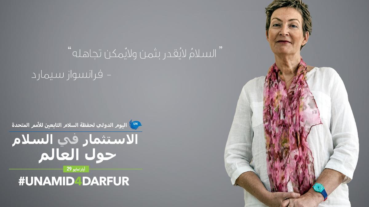 تترأس فرانسواز سيمارد قسم سيادة القانون في اليوناميد منذ ثلاث سنوات في الفاشر، شمال دارفور. وكانت السيّدة سيمارد قد عملت في عدد من بعثات الأمم المتحدة حول العالم على غرار غواتيمالا ورواندا وهايتي وكوسوفو وساحل العاج إضافة إلى شغلها عدة مناصب عليا في مجال العمل القانوني. وفي هذه المقابلة، تعرب عن وجهة نظرها حول أهميّة إقامة سلام مستدام في جميع أنحاء دارفور.
