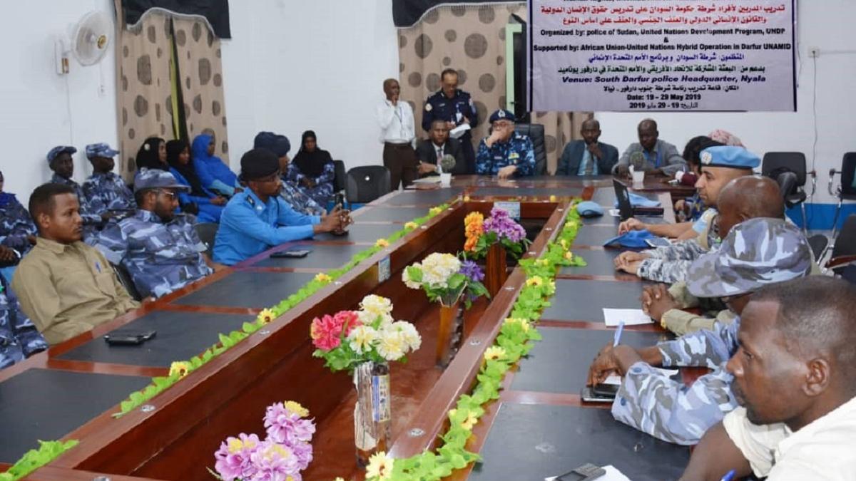 في الفترة من 19 إلى 20 مايو 2019، نظَّم مكتب اتصال اليوناميد وفريق الأمم المتحدة القطري الولائي بجنوب دارفور بالشراكة مع شرطة الولاية ورشة عمل لتدريب مدربين بالشرطة السودانية لمدة أسبوعين حول حقوق الإنسان. ركزت الدورة التدريبية أساسًا على المعايير الدولية لحقوق الإنسان والقانون الدولي الإنساني وبتركيز خاص على العنف الجنسي القائم على النوع الاجتماعي.
