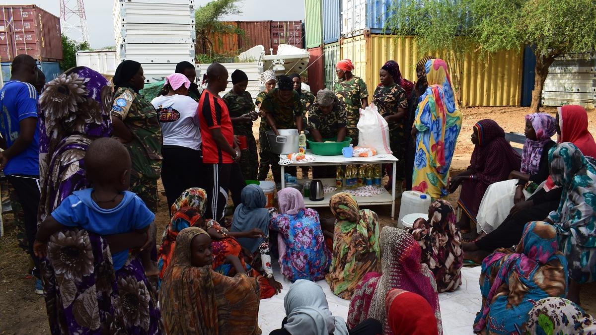 في 29 أغسطس 2019، حضرت أكثر من 100 امرأة من مخيم خور أبشي للنازحين في جنوب دارفور دورة تدريبية حول إعداد "المندازي" (نوع من الخبز المقلي المصنوع من القمح) وهذه المبادرة هي جزء من مشاريع بناء قدرات ومشاريع مدرة للدخل صممتها جنديات اليوناميد في موقع فريق خور أبشي لدعم النساء المحليات في المنطقة.