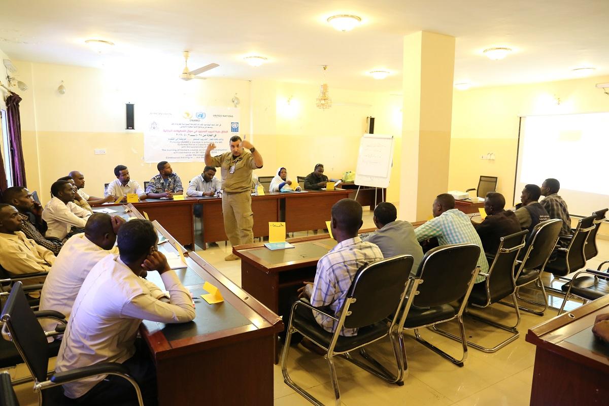 زالنجي: 7 مايو 2019، نظَّمت شرطة اليوناميد بمكتب التنسيق الولائي وبرنامج الأمم المتحدة الإنمائي بالتعاون مع شرطة حكومة السودان ورشتي عمل بالجنينة بولاية غرب دارفور لمدة عشرة أيام لتدريب المدربين لعدد 38 من ضابط الشرطة في…
