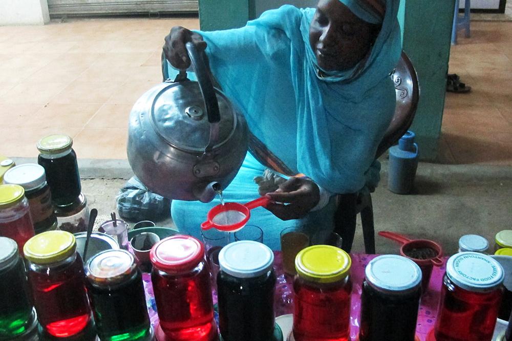 ممثلة بمجموعة مرافئ الدرامية، تقدم عرضاً اثناء انطلاق الحوار والتشاور الداخلي في دارفور بجامعة الفاشر. تصوير البرت غنزاليس فاران.