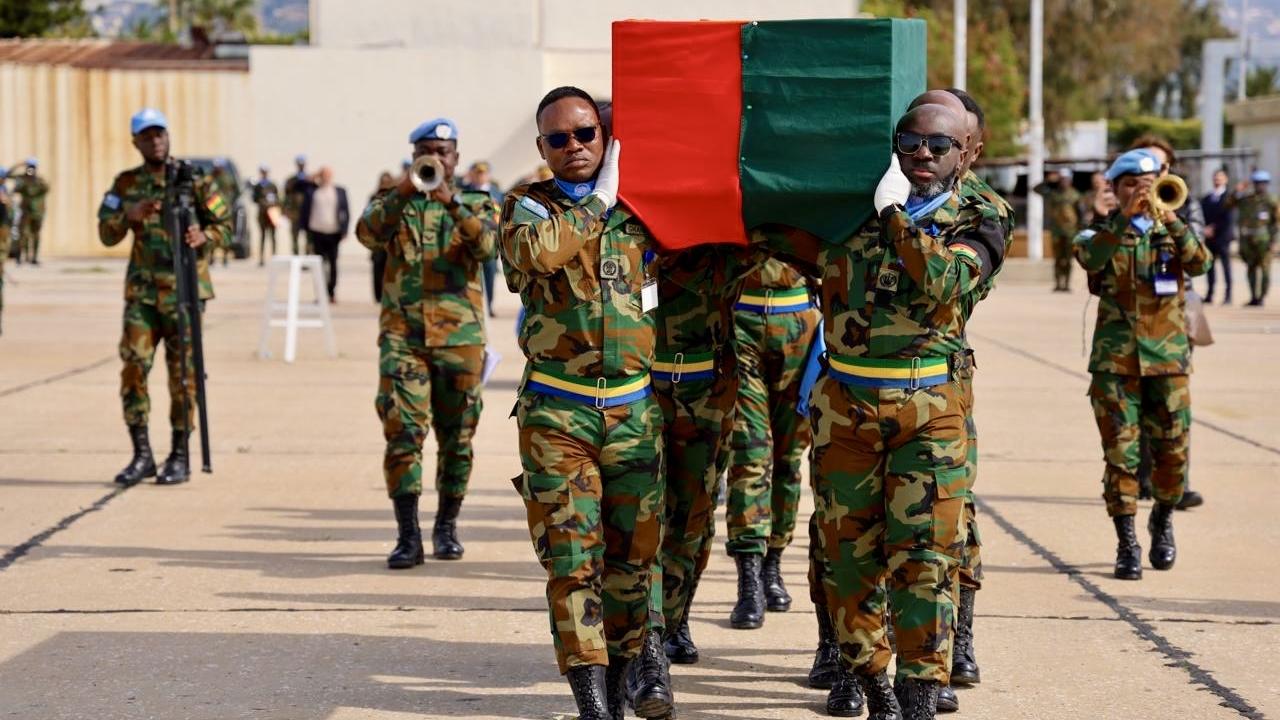 أقامت اليونيفيل والقوات المسلحة اللبنانية اليوم مراسم تكريم المؤهل أول جورج أييم، وهو جندي حفظ سلام غاني توفي جرّاء إصابته بنوبة قلبية في 4 شباط 2025، أثناء خدمته مع اليونيفيل.