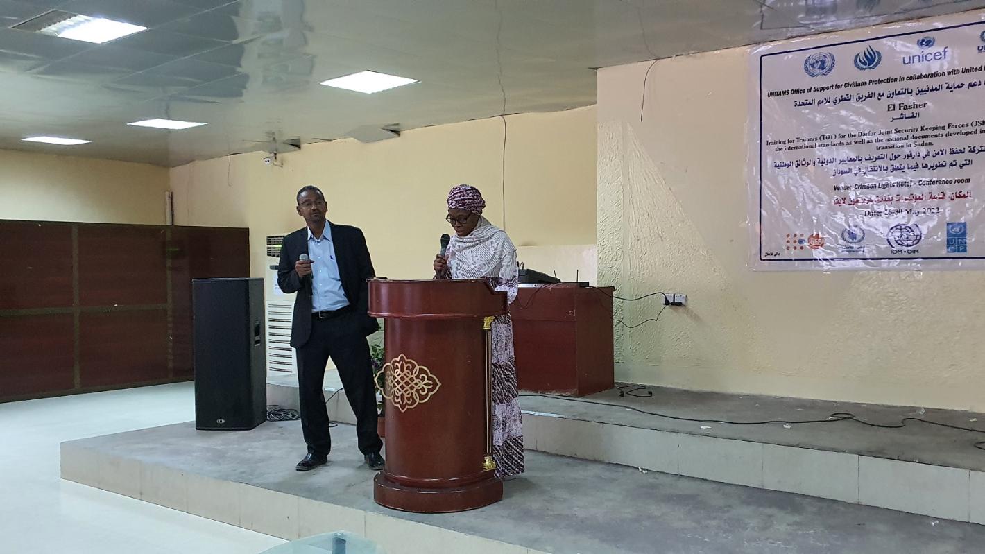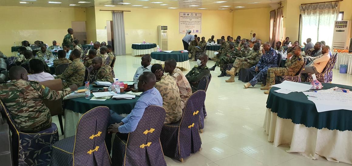 عقدت اليونيتامس بالتعاون مع فريق الأمم المتحدة القطري، ورشة عمل في الفترة من 26 الى 30 مايو2022، استضافت 56 من القادة والكوادر العسكريين والذين يمثلون القوات النظامية الحكومية والحركات المسلحة المُوقعة على اتفاقية جوبا للسلام، بهدف تعزيز قدراتهم ليتمكنوا بدورهم من تدريب عناصر قوات حفظ الأمن في دارفور حول متطلبات حقوق الإنسان وحماية المدنيين بالإضافة الى مبادئ القانون الإنساني الدولي.