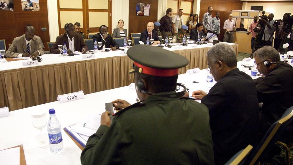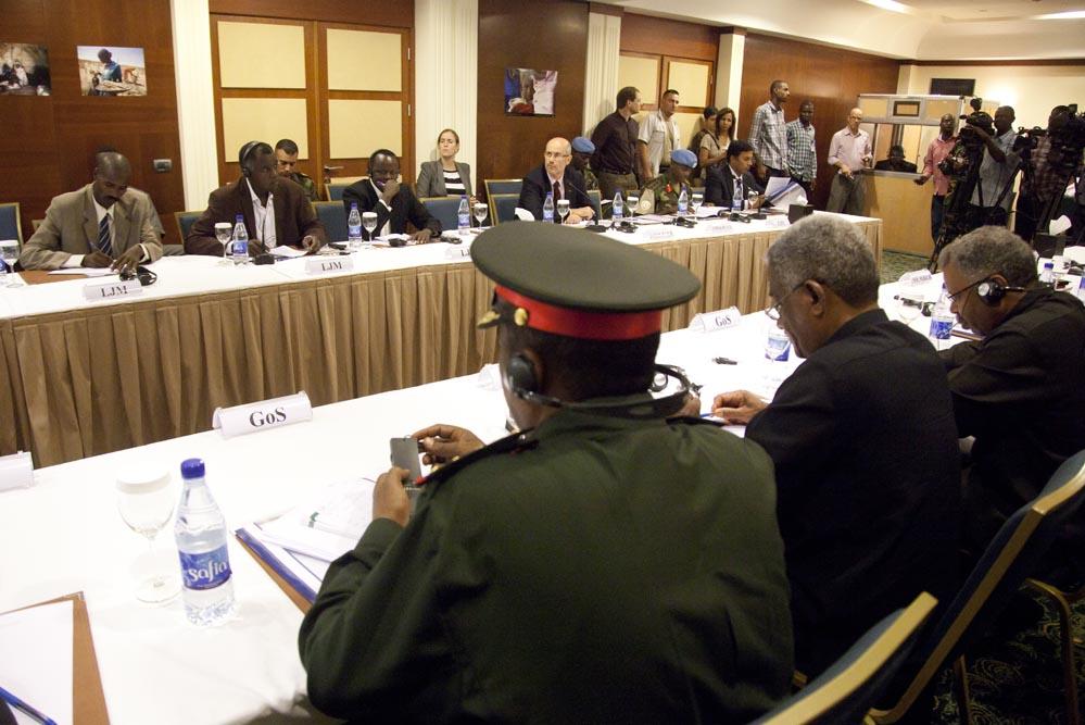 Representatives of the Government of Sudan (foreground) face representatives of the Liberation and Justice Movement (LJM) at the meeting of the Joint Commission. Photo by Albert González Farran