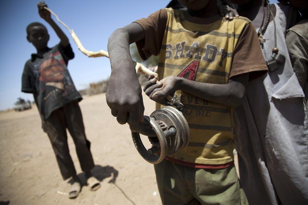 Children play with the remnants of a bomb in Arosha. Photo by Albert González Farran - UNAMID