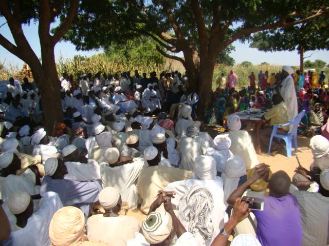 The campaign, funded by the Darfur Community Peace and Stability Fund, was directed at raising public awareness and promoting inter-community dialogue as a means for resolving conflicts at the local level and fostering peaceful coexistence. Some 40 prominent community leaders toured farming and nomadic settlements across the region and disseminated peace messages, reaching out to community leaders, youth and women, members of local farmers’ committees and nomads across the area.
