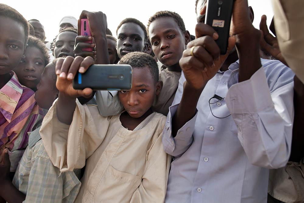 Residents of El Sereif, North Darfur, take photos with their mobile phones at a cultural and sports event organized by UNAMID as part of a “We Need Peace Now” campaign. An increasing number of young Darfuris, especially students in secondary schools and universities in the region, are using mobile phones to communicate with friends and family. Photo by Albert González Farran, UNAMID.