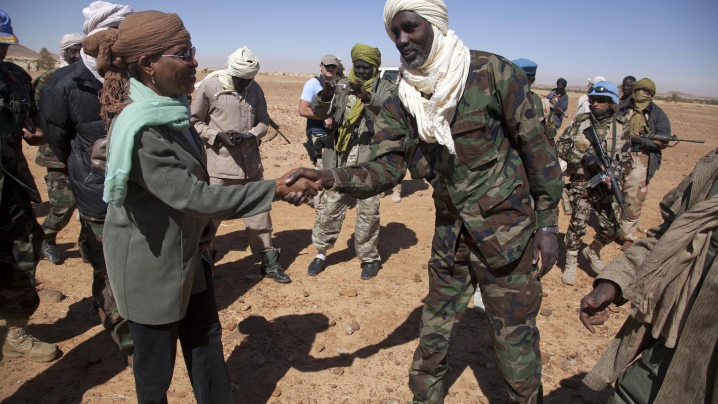 On 16 December 2012 in Darma, North Darfur, Acting Joint Special Representative Aichatou Mindaoudou meets General Mohamed Bashar and other leaders of the Justice and Equality Movement - Sudan. Photo by Albert González Farran, UNAMID.