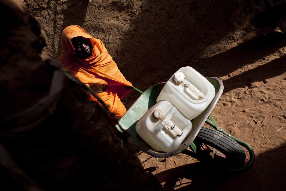 Kariya Mohamed Abbakar, a 50 year old woman from Jebel Saiey, North Darfur, pushes her wheelbarrow each week to the nearest water point in the Abu Shouk camp for internally displaced people, where she has been living for the past 10 years.