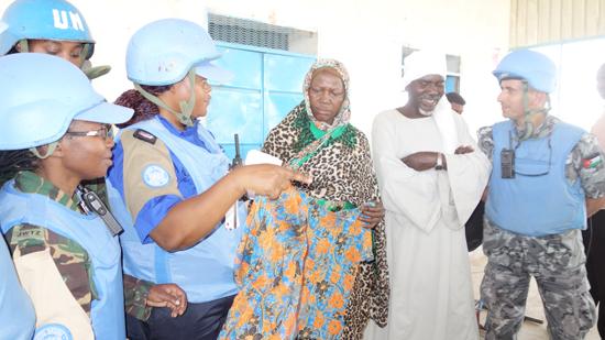 Zalingei, 19 May 2015 - UNAMID donated one hundred pieces of clothing to women at Taiba camp for internally displaced persons (IDPs) in Zalingei, Central Darfur, on 19 May. The event came as part of the Mission’s celebration of the International Day of United Nations Peacekeepers, observed annually on 29 May, and was attended by community leaders, IDPs and representatives of UNAMID.