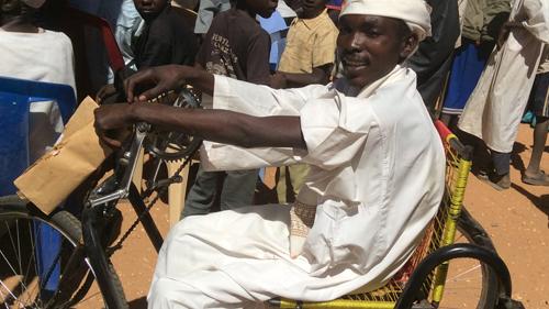 Omar, a student at the University of Zalingei, in El Geneina, also points outs that the wheel chair he received would enable him to move around easily at the university.