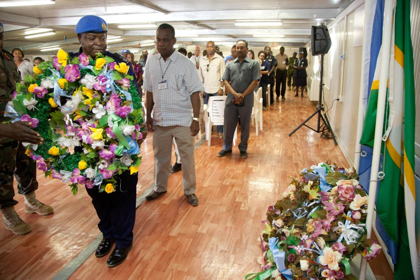 UNAMID PR / 07-2011 PRESS RELEASE UNAMID MOURNS FALLEN PEACEKEEPERS El Fasher, 06 April 2011 – UNAMID today paid respects to the memory of a female police advisor who died in an ambush yesterday afternoon in Kutum, North…