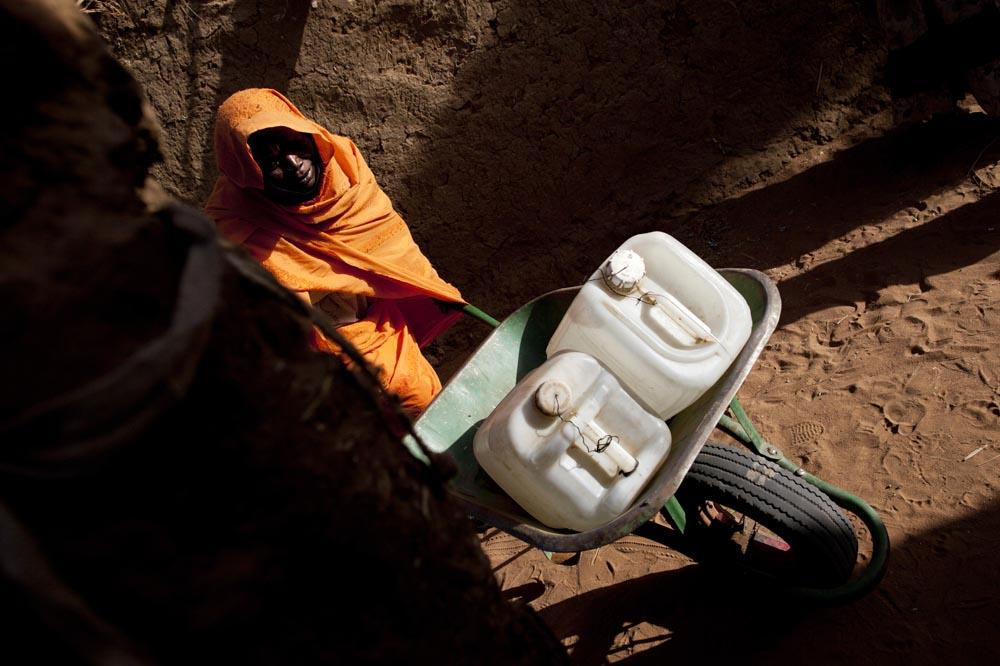 By Albert González Farran Kariya Mohamed pushes her wheelbarrow with two jerrycans on the way to her shelter. Photo by Albert González Farran Kariya Mohamed Abbakar, a 50 year old woman from Jebel Saiey, North Darfur, pushes…