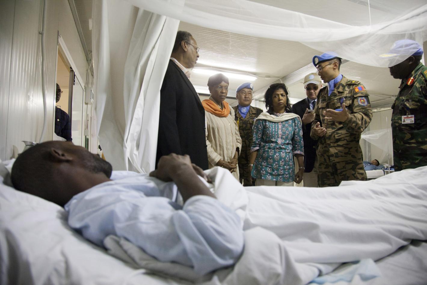 Ameerah Haq visits a Darfuri patient in the UNAMID hospital run by the Mongolian contingent. Photo by Albert González Farran. El Fasher, 08 November 2012 –The Under-Secretary-General for the Department of Field Support (USG…