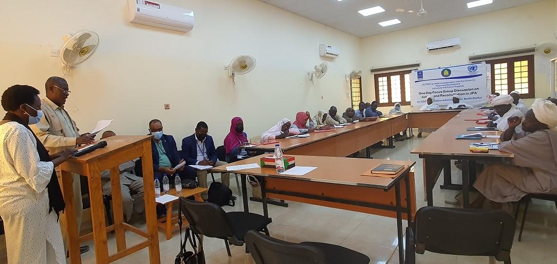 On 24 February 2022, UNITAMS in conjunction with the Peace Studies Center at the Elfasher University and the United Nations Development Programme (UNDP), organized a one-day Focused Group Discussion on Justice and Reconciliation in Darfur, in line with the implementation of the Juba Peace Agreement (JPA) provisions related to justice and reconciliation. Around 30 participants, representing civil society organizations including women, and native administration from across North Darfur State, participated in the event.