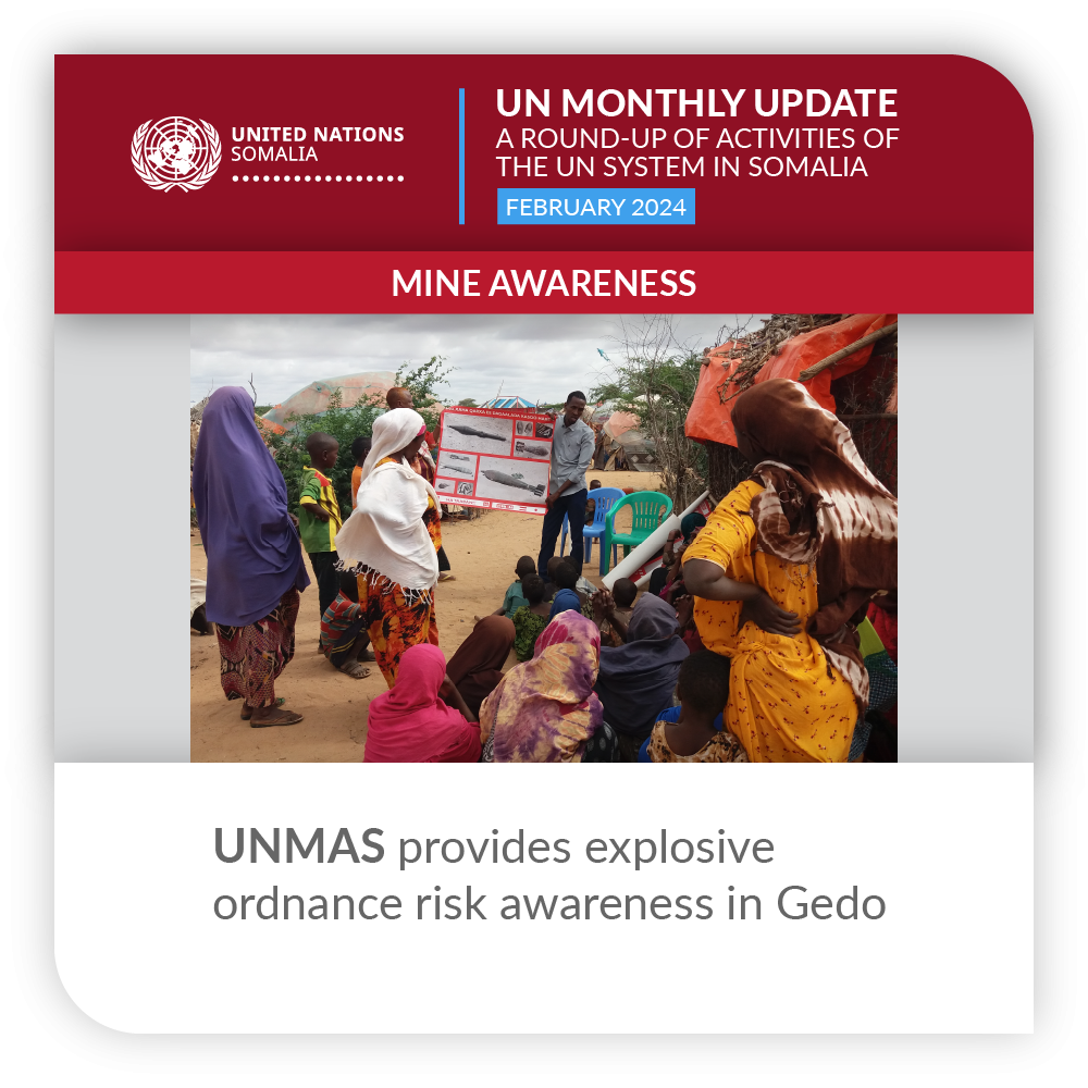 UNMAS deployed two specialized teams to deliver explosive ordnance risk education (EORE) to the population and to conduct clearance operations in the Gedo region, located in southern Somalia.