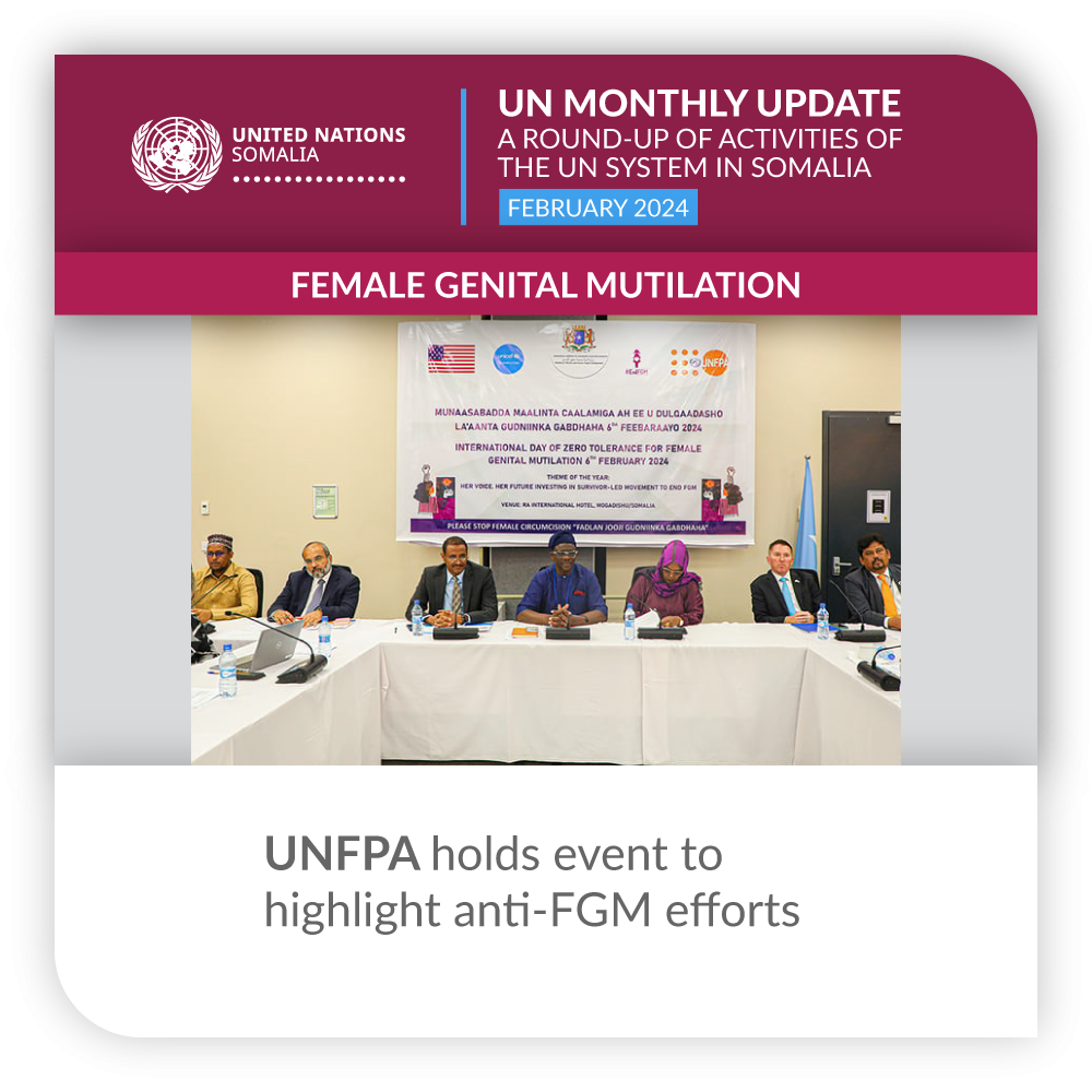 Organized with the Federal Ministry of Women and Human Rights Development (MWHRD), UNFPA held an event in Mogadishu to mark the International Day of Zero Tolerance for Female Genital Mutilation (FGM), which falls on 6 February annually.