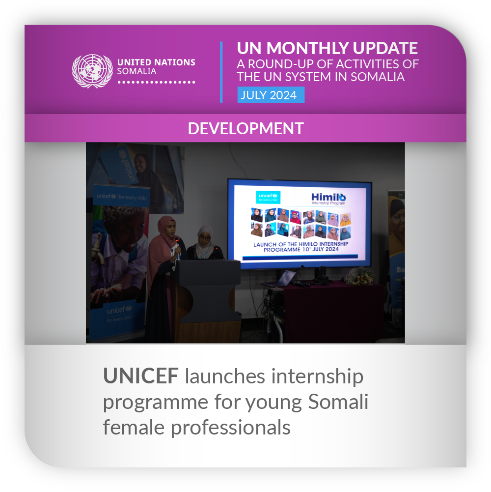 UNICEF launched the Himilo Internship Programme, which is designed to empower young Somali women with essential skills and experience, attract qualified Somali female graduates to join the UN children’s agency, improve the gender parity ratio and promote inclusivity.