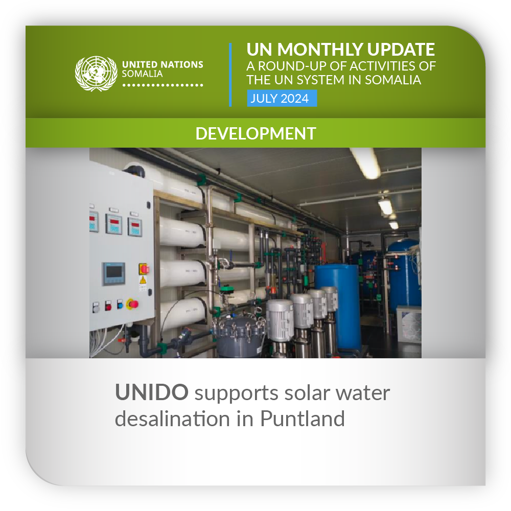 UNIDO supported the installation of a solar photovoltaic water desalination facility in Waaciye, in Somalia’s northern Federal Member State of Puntland.
