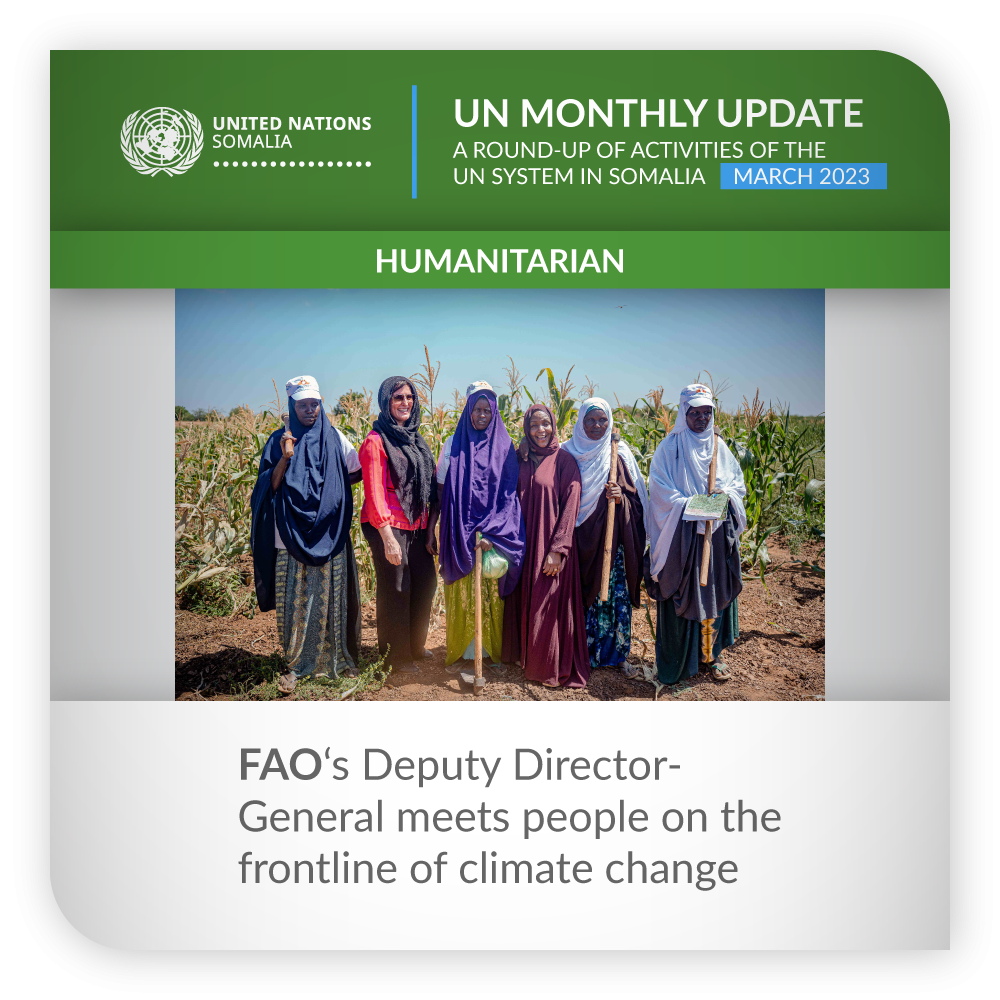 Assistant Secretary-General for Humanitarian Affairs Ms Joyce Msuya accompanied by Deputy Director-General of FAO visited Somalia between 7 and 9 March. The UN officials engaged with affected people, frontline humanitarian responders, members of the Humanitarian Country Team, donors, and government counterparts to identify key gaps, challenges, and immediate priorities. The mission aimed to mobilize resources and capacities to scale up the ongoing lifesaving response.