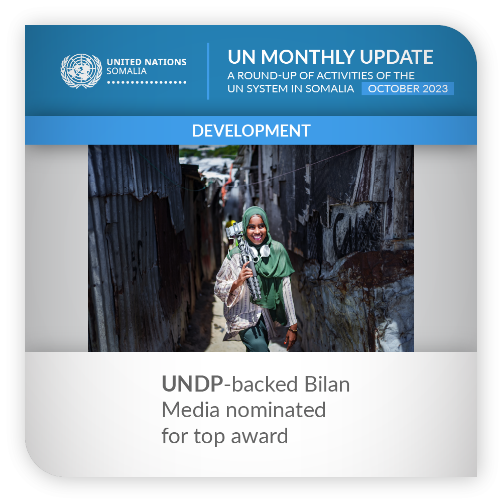 ![]() | Development | UNDP-backed Bilan Media nominated for top award Somalia’s first and only all-women media team, Bilan Media, was nominated for the 2023 Index on Censorship Press Freedom Award in the Journalism category. The nomination came after almost two years of smashing taboos and blazing a trail for women journalists in one of the most dangerous countries to report the news. Established with support from UNDP, Bilan has provided the first opportunity for Somali women journalists to exercise complete editorial independence, deciding what they want to report and how. They have already used this freedom to break some of Somalia’s first major stories on a range of previously ignored issues, including the terrifying discrimination against albino communities, the life of HIV-positive Somalis living on the streets, the abuse of female orphans, schools for autistic children and teachers and an epidemic of opiate use among women in Mogadishu. | |