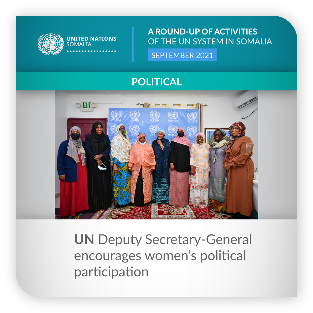 UN Deputy Secretary-General Amina J. Mohammed visited Somalia to express her solidarity with Somali women’s calls for full and equal participation in political life, and to express the support of the international community for timely, inclusive, peaceful and credible elections.