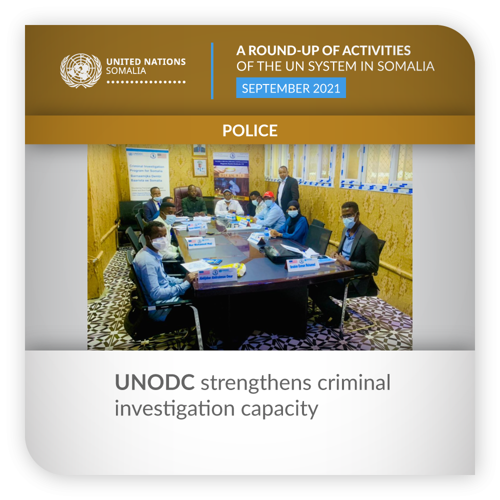 UNODC Criminal Investigation Programme (CIP) for Somalia is supporting the Somali Police Force’s Criminal Investigation Division and Criminal Investigation Units with the strengthening of their investigation capacity through the UNODC Criminal Investigation Program (CIP) for Somalia.